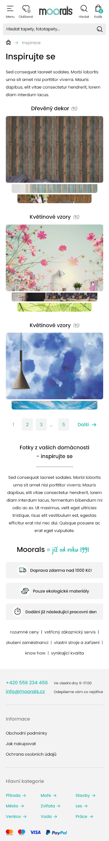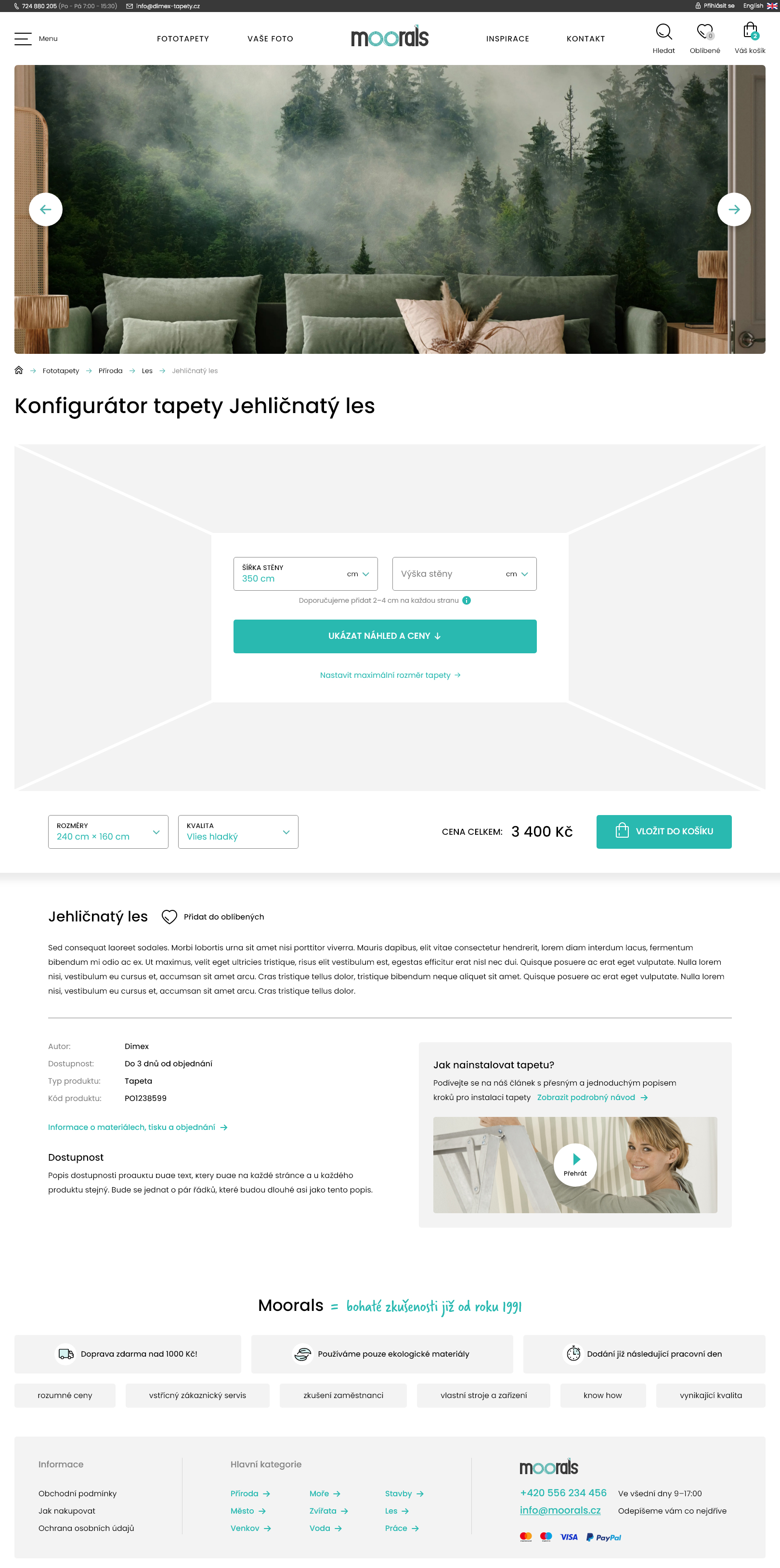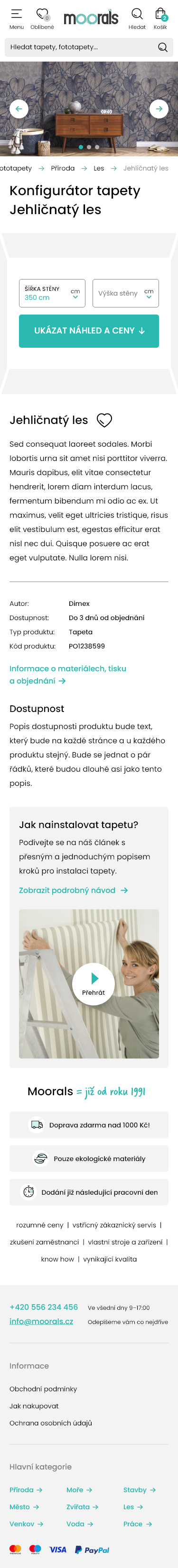 Moderní eshop, který se zabývá prodejem fototapet. Eshop obsahuje konfigurátor fototapet, ve kterém si můžete zadat vlastní řez (rozměry) a materiál.