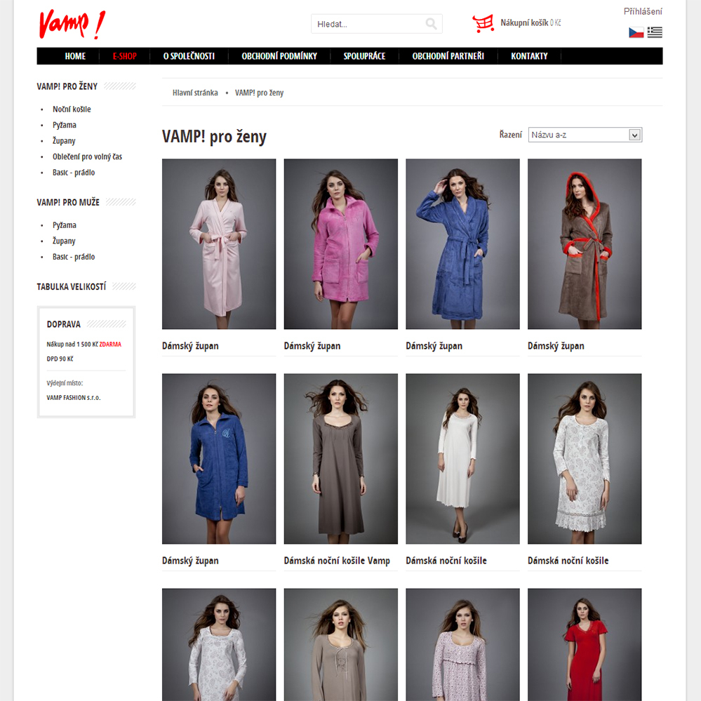 Sháníte noční košili, pyžamo, župan či oblečení pro volný čas? Zkuste Vamp.cz. Orientace v obchodě je extrémně jednoduchá a je tady z čeho vybírat.
