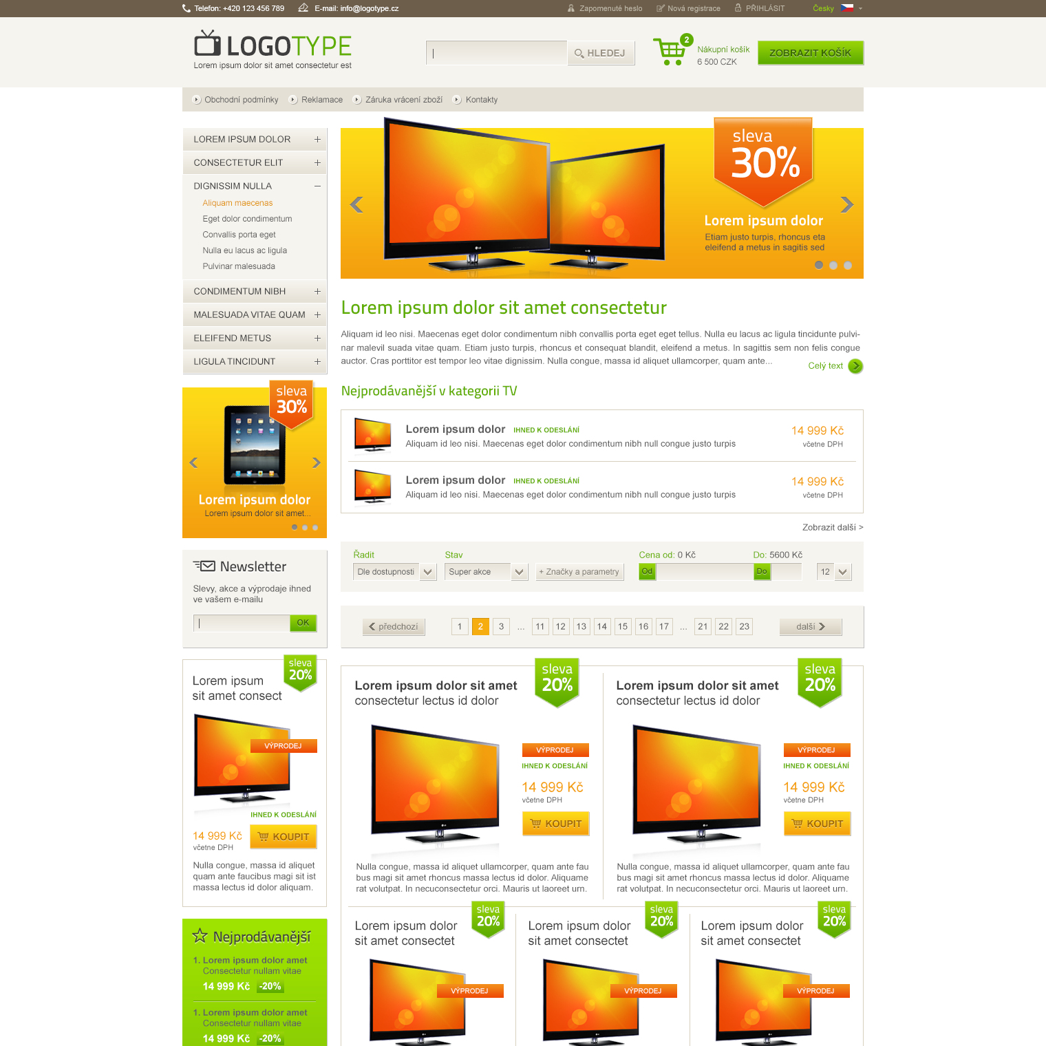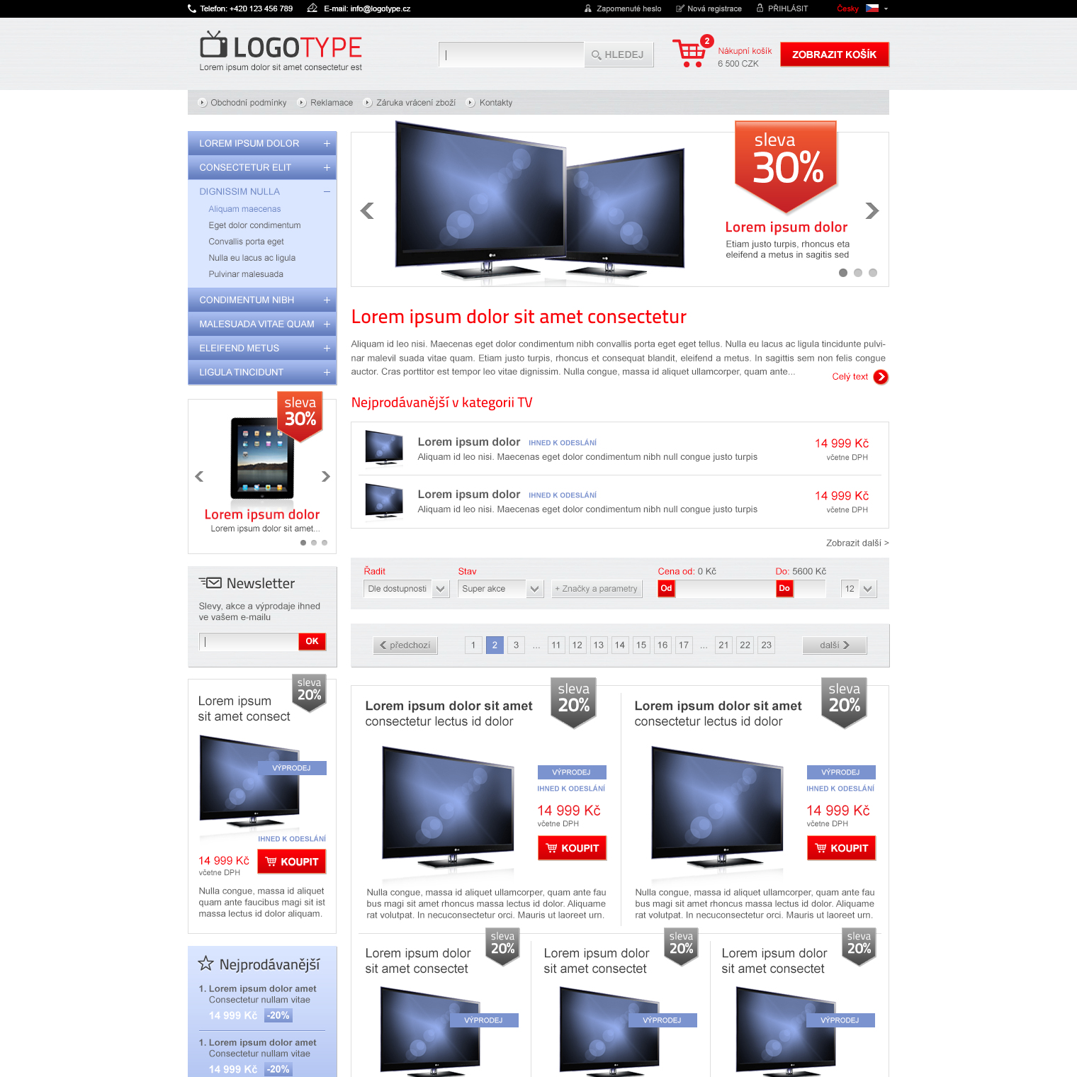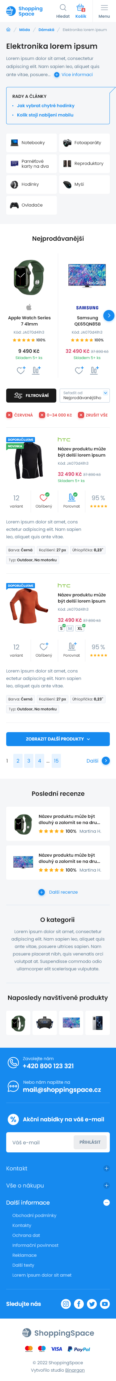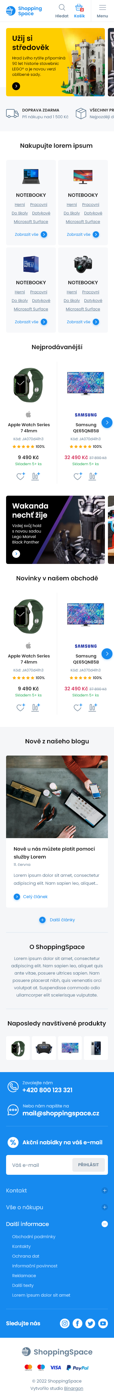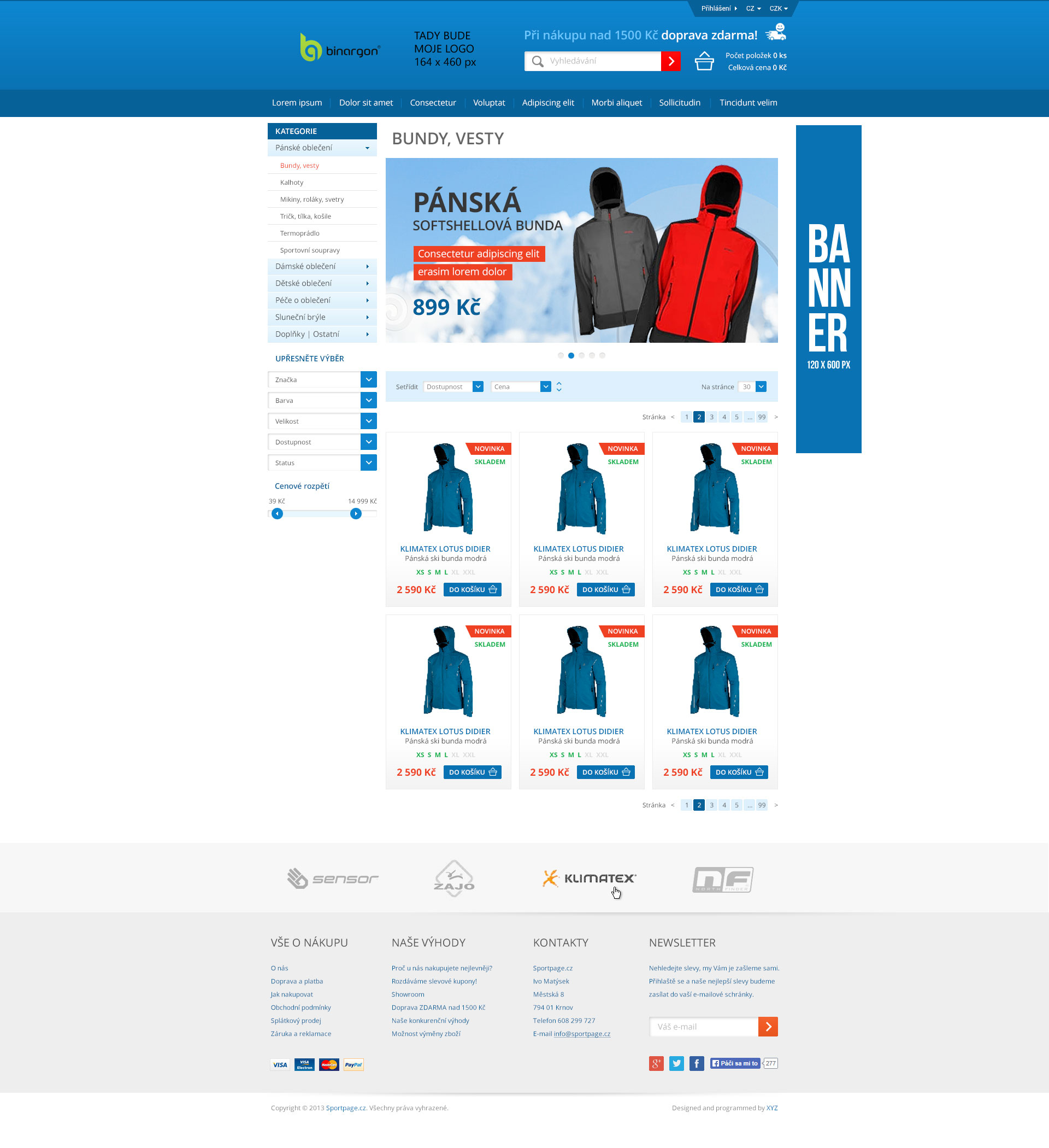 Free templates are a simple way to start a new e-shop without an initial investment into your own design. All graphic designs shown here can be used for e-shops BINARGON for free. Any template can also be adjusted just for a small fee, so that it better meets your sale product range.
