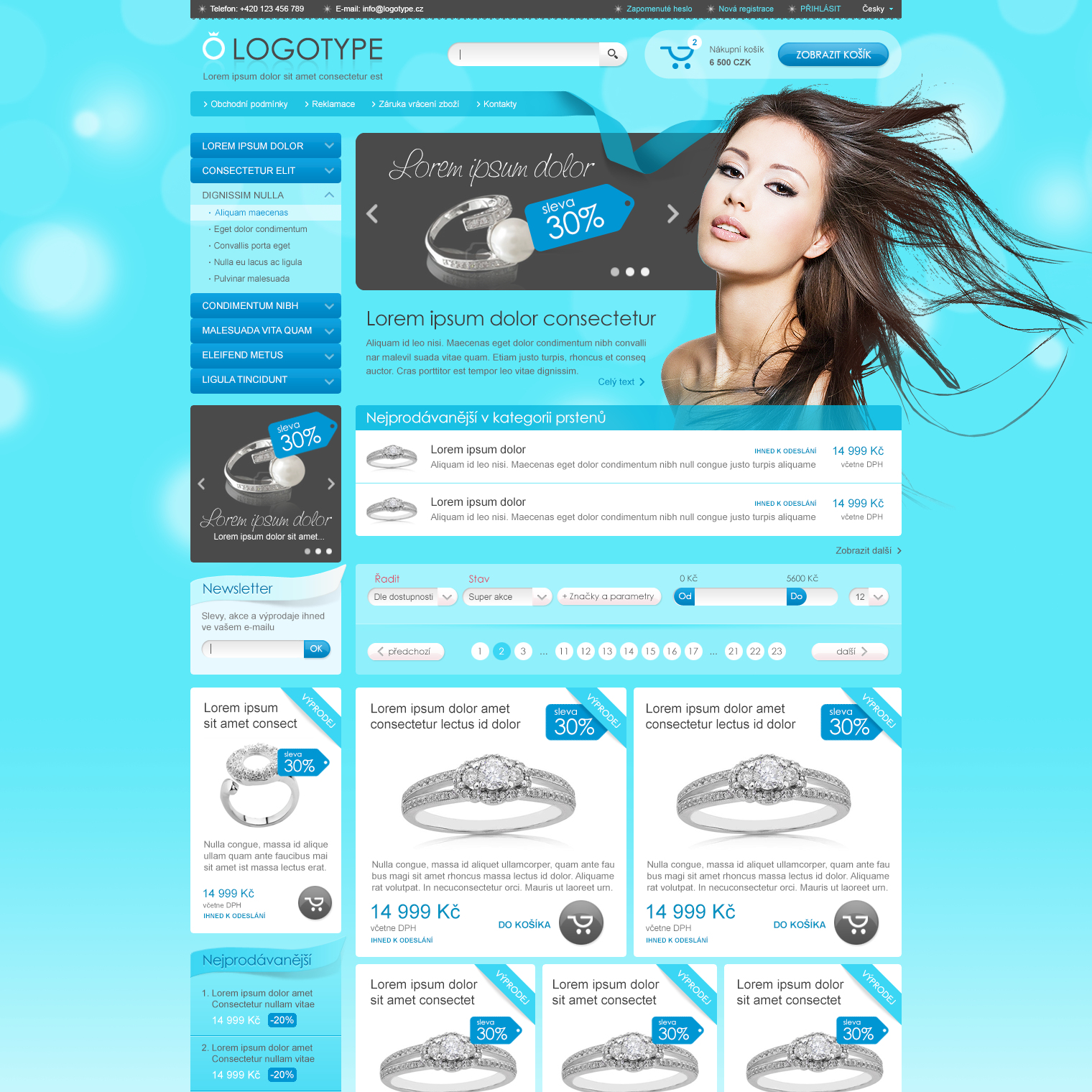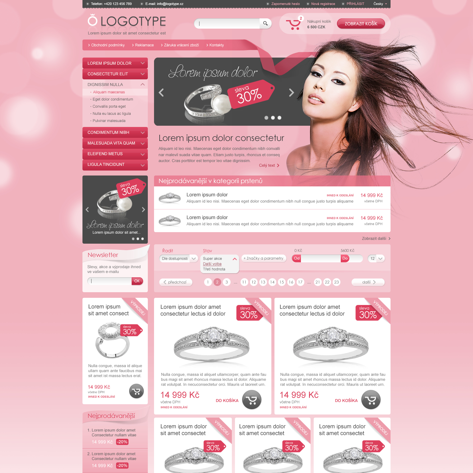 Šablona určená pro prodej především luxusního zboží jako je prádlo, šperky nebo parfémy.